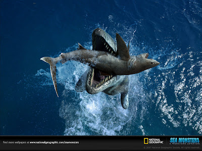 Mom do dinosaurs still exist? Be very careful before you answer �no� again. Here we see a dinosaur like creature catching a shark out of the water� This makes one think whether are we on this planet alone or are we sharing it with living fossils.